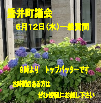 6月12日(水) 垂井町議会 一般質問です。